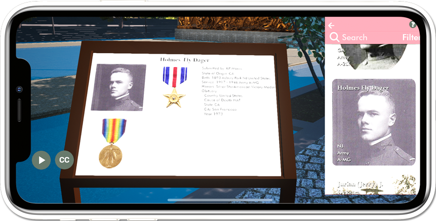 To remember individuals who served, the app provides the ability for families and organizations to submit a “Virtual Remembrance” of WWI veterans, along with anyone who served in WWI, including nurses, ambulance drivers, Red Cross volunteers, local heroes, and even companies that stepped up. The only requirement is that the story of service needs to be WWI driven. These Virtual Remembrances are submitted via a web page accessed through the app, curated, and then manifest in the memorial app. The story of service is then turned into speech and text so it can be listened to or read.