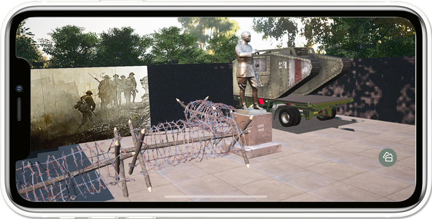The app provides an ability to explore the past using the tools of the future. Developed by the Doughboy Foundation, a 501c(3) not for profit foundation under an education grant from Walmart, the app places a scaled version of the entire 1.8-acre WWI Memorial anywhere including backyards, driveways, living rooms, and more.
