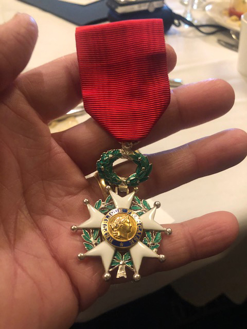 By presidential decree of French President Emmanuel Macron, the Legion of Honor Medal awarded is the highest honor conferred for military bravery and service, notably initiated by French Emperor Napoleon Bonaparte in 1802.