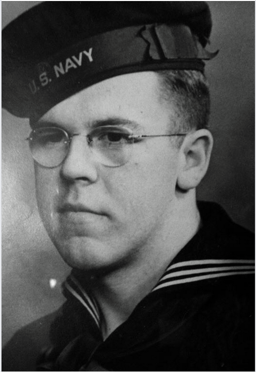 Gene was transferred to the USS Chilton for the Pacific tour, island-hopping to the Marshall Islands, Caroline Islands, and onto the chain of the formidable Ryukyu Islands. In June 1945, at Okinawa Island (closest to mainland Japan), a thirty by fifty mile stretch of land, Dollard faced the greatest carnage of the war. The Japanese nickname “Violent Typhoon of Steel” referred to the ferocity of the fighting, the sheer numbers of Allied ships and armored vehicles up against a massively enemy-entrenched island. Fifty thousand Americans died. Gene did not escape injury. His ship heaved, struck by a fierce kamikaze, and he was wounded.