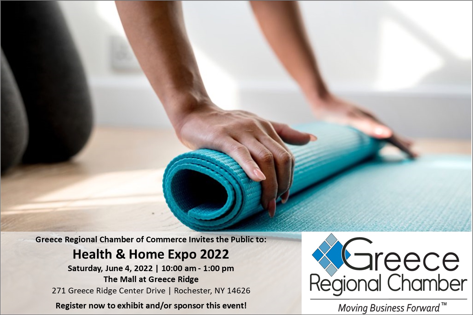 The Greece Regional Chamber of Commerce recently announced its 2022 Health & Home Expo, which will be held on Saturday, June 4, 2022 • 10:00AM – 1:00PM at The Mall at Greece Ridge (starting by JC Penny), 271 Greece Ridge Center Drive, Rochester (Town of Greece), NY 14626.