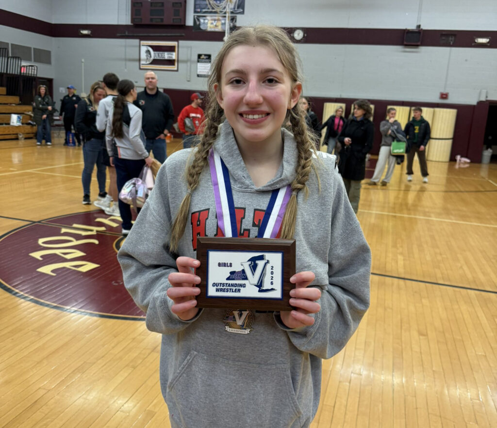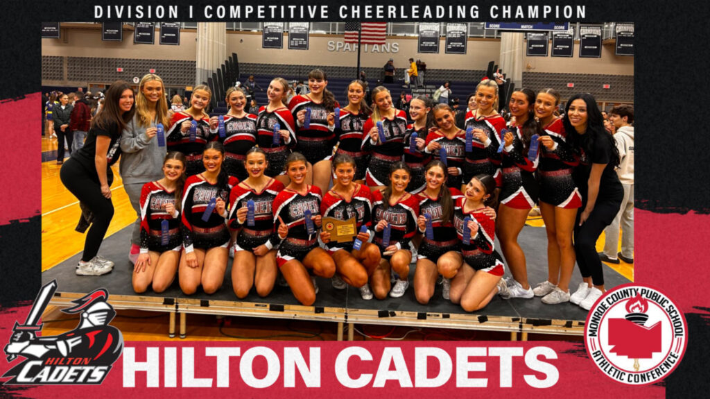 The Monroe County Indoor Track & Field Championships were held on February 14 at SUNY Brockport. Three local athletes topped the podium for their individual events. Photos from @MCPSAC on X. Bridget Courtney, Spencerport, Girls 600 Run (1:38.46) Arlie Sears, Hilton, Girls High Jump (5’ 6”) Alexis Gerig, Hilton, Girls Pole Vault (12’ 1”)Brooklynn Fitzgerald (114 lb.) became the first-ever female Section V Wrestling Champion in Hilton school history. She started off in dominant fashion, needing only about 1:17 combined to rack up two 10-0 tech falls on her first two opponents. She then secured a few takedowns enroute to a 2:08 pinfall in her semifinal match. Brooklynn found herself up against Yailianys Lopez (Geneva) in the finals, whom she lost to 10-9 in the semifinals of the Canandaigua Revolution earlier this season. Brooklynn fell behind early when Lopez opened the scoring, but she bounced back and scored a reversal, which she converted to a pinfall at 1:39, securing the Sectional Championship. Brooklynn’s performance earned her the title of Most Outstanding Wrestler for the Lightweights. Photo from @HiltonCadets on X.Churchville-Chili’s Paul Glor was named the 2024-25 Boys Cross Country Coach of the Year by the NFHS (National Federation of State High School Associations). Only one coach in New York state in each sport receives this award annually. Although it is based on prior years’ work, Glor received the award on February 11. Photo from @CCCSDathletics on X.The Hilton Cadets earned the Division I title at the Monroe County Cheerleading Championships held February 11 at Gates Chili. The team is coached by Shelly Caamano. Photo from @MCPSAC on X.Holley-Kendall wrestlers won the 2026 Genesee Region League Wrestling Championship. The match finished deadlocked at 40-40, but Holley-Kendall claimed the victory and the league title on the 9th criteria, securing their first G-R title since 2018. Pins from Jeremy Lutes, John Blosenhauer, Jack Brueilly, Brenden Eichas, Aiden McGrain, and Immanuel Cornell sealed the night, with a major decision from Matteo Caterisano helping power the victory. Photo from @kendallcsd on X.The 1975–76 Kendall Varsity Boys Basketball Team was inducted into the Kendall Athletic Hall of Fame on February 12. Under Coach Dick Reynolds, the Eagles finished a flawless 22–0 season, extending an incredible 55-game win streak, and earning recognition as the No. 1 team in New York State. They also won four straight Section V Class C titles, were the Genesee Region Division II champions, and the Spencerport Christmas Tournament champions. More than championships, this team brought a community together and set a benchmark that still inspires every student-athlete who wears a Kendall jersey. Photo from @DrieselMark on X.