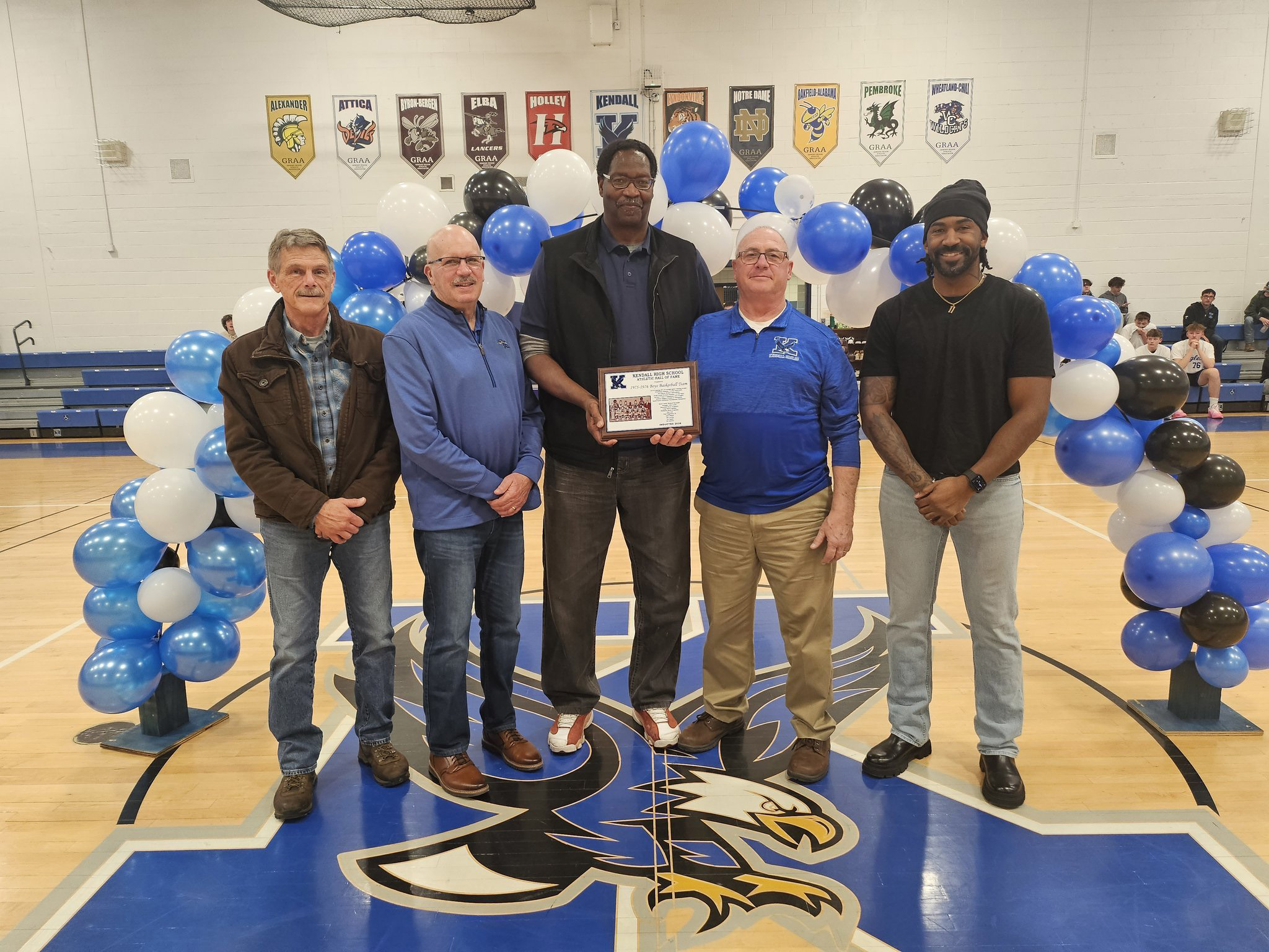 The 1975–76 Kendall Varsity Boys Basketball Team was inducted into the Kendall Athletic Hall of Fame on February 12. Under Coach Dick Reynolds, the Eagles finished a flawless 22–0 season, extending an incredible 55-game win streak, and earning recognition as the No. 1 team in New York State. They also won four straight Section V Class C titles, were the Genesee Region Division II champions, and the Spencerport Christmas Tournament champions. More than championships, this team brought a community together and set a benchmark that still inspires every student-athlete who wears a Kendall jersey. Photo from @DrieselMark on X.
