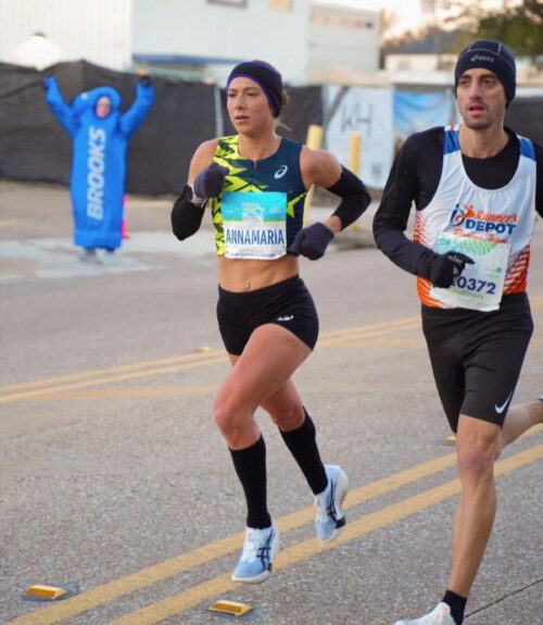 Churchville-Chili track & field alum Anna Kostarellis, competing for Asics, completed her first half marathon January 19 in Houston. She finished in the Top 20 American women, averaging 5:25 per mile for 13+ miles.