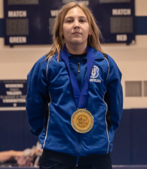 Approximately 60 girls from the Greater Rochester area competed in the inaugural Monroe County Girls Wrestling Championships January 20 at Pittsford Sutherland. Brockport’s MacKenzie Miesch won the championship in the 94-pound class. Hilton’s Brooklyn Fitzgerald was the runner-up in the 107-pound weight class while Brockport’s Leah Breuilly came in second at 132 pounds. Not pictured is Brockport’s Emylah Herring who was runner-up in the 138/145-pound class.