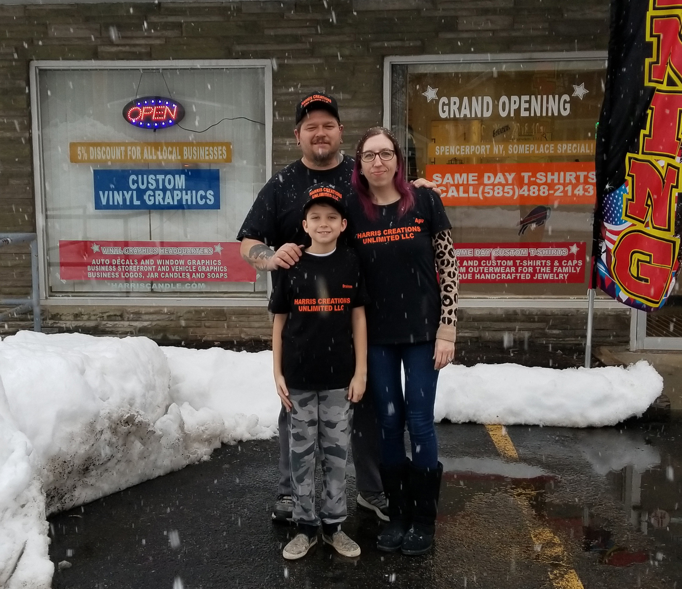 Products and specialties: Vinyl graphics, custom t-shirts and caps. Signs, window decals, magnets and vinyl lettering for your auto and business. Soaps and candles.