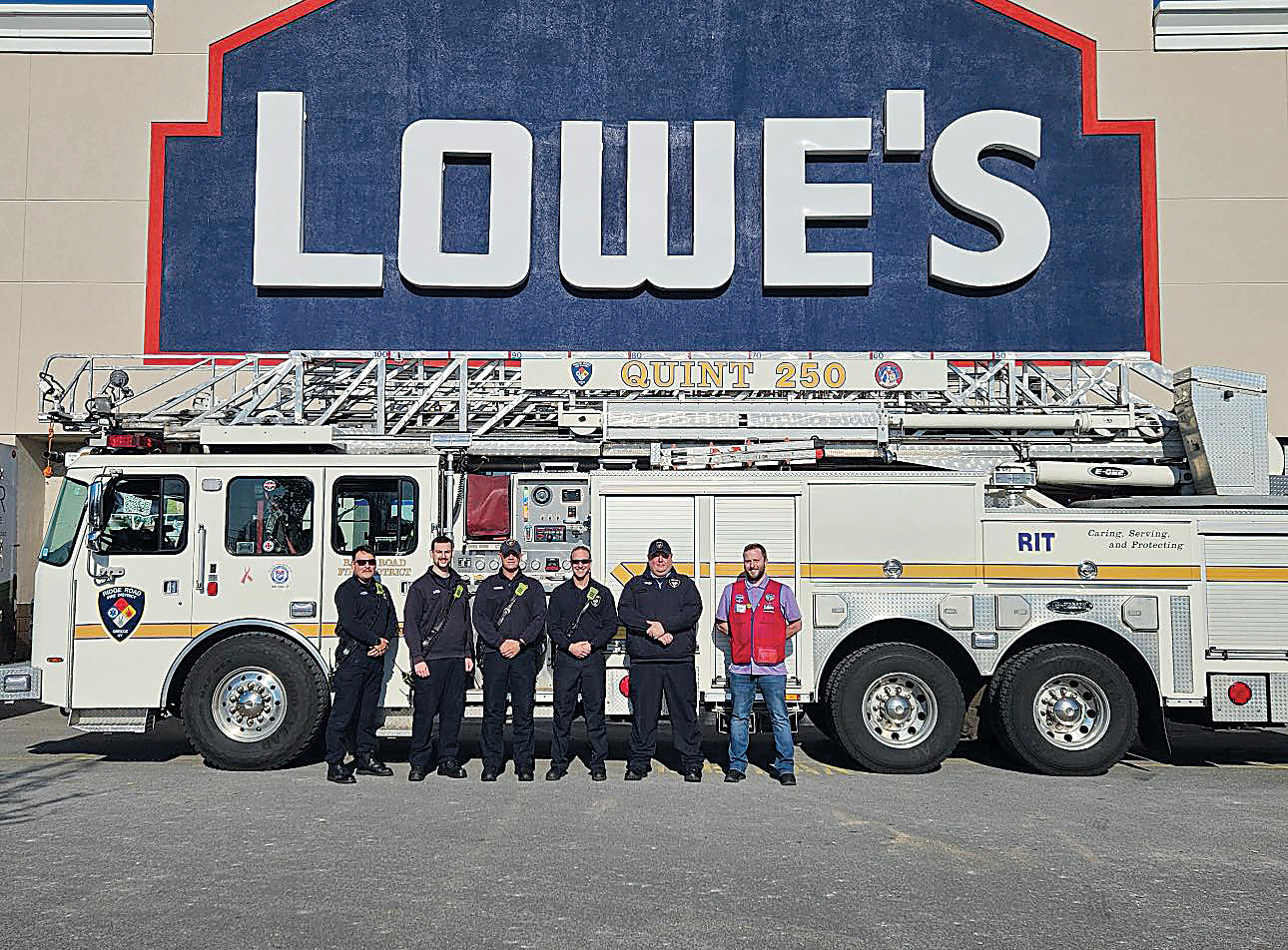 Greece Lowe’s recently donated building materials to the Ridge Road Fire District, supporting the safety and readiness of the Greece community. The provided materials will allow the fire district to construct multiple training stations for use during its monthly drills and in its upcoming fire academy beginning next fall. These improvements will have a meaningful and lasting impact on the preparedness and proficiency of district firefighters.