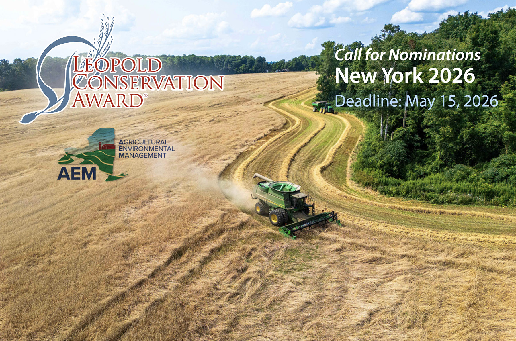 County Soil and Water Conservation Districts (SWCDs) apply for the award on behalf of farms. Eligible candidates successfully incorporate AEM best management practices into their farm management, helping them meet business and environmental goals. Applicants should demonstrate conservation leadership and outreach in the agricultural sector and be an inspiration to other farmers. Applications must be received by the New York State Department of Agriculture and Markets by May 15, 2026.